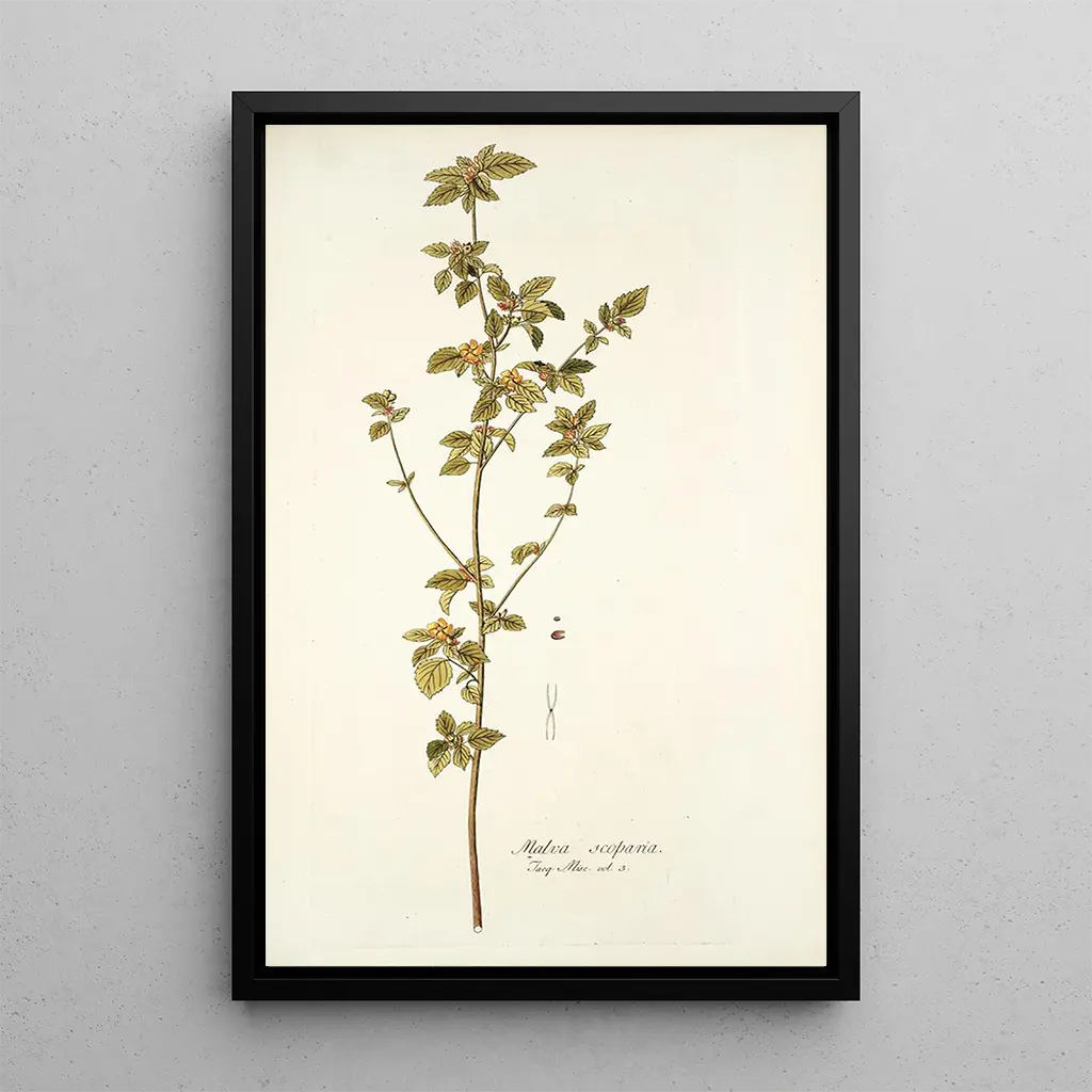 Konsttrycket av Malva scoparia är ett dekorativt föremål som kommer att försköna ditt boendeutrymme. Oavsett om det är i ett vardagsrum, ett sovrum eller ett kontor, tillför detta konsttryck en touch av natur och lugn. Kvaliteten på utskriften garanterar en anmärkningsvärt trogen återgivning av färger och detaljer i det ursprungliga verket, vilket gör det möjligt att fullt ut uppskatta skönheten hos denna växt. Med sitt estetiska tilltal är detta konsttryck ett perfekt val för den som vill integrera ett förfinat och uttrycksfullt konstverk i sin inredning. Skäm bort dig själv med detta konsttryck och låt naturens magi blomstra i ditt hem.