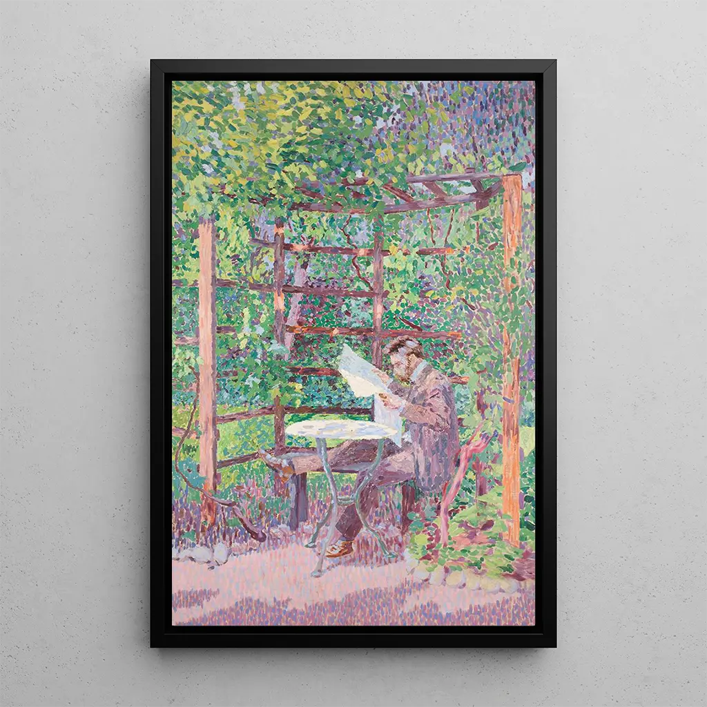 Att välja konsttrycket "Homme som läser i ett lusthus" för ditt utrymme är ett utmärkt sätt att tillföra en känsla av lugn till din inredning. Oavsett om det är i ett vardagsrum, ett kontor eller ett sovrum, framkallar detta konsttryck fred och ro, och skapar en miljö som främjar avkoppling. Dess reproduktionskvalitet garanterar trohet mot färger och detaljer i originalverket, samtidigt som det tillför en obestridlig estetisk dimension. Genom att integrera detta konstverk i ditt hem bjuder du in inte bara konst, utan också ett ögonblick av reflektion och stillhet, vilket berikar din vardag.