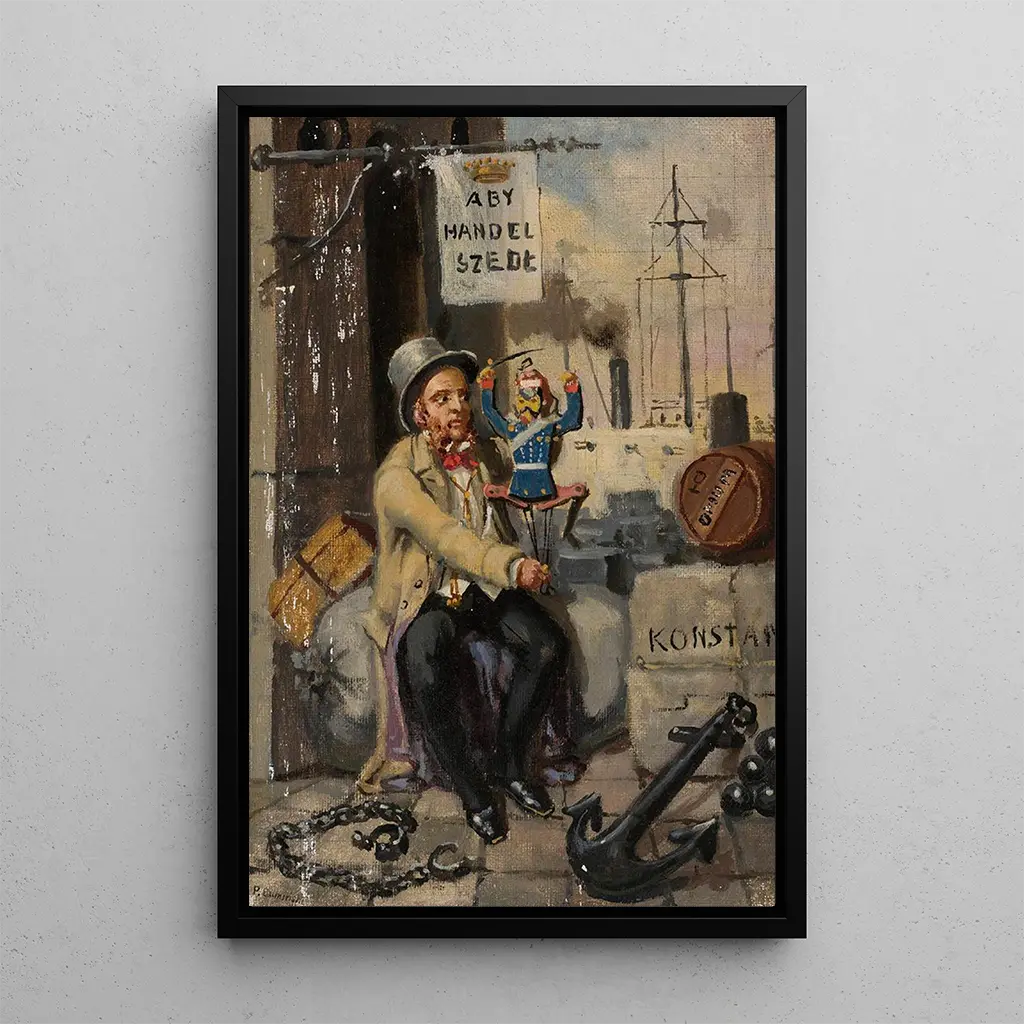 Konsttrycket av "Homme med en marionett" är ett utmärkt val för att berika ditt hem, oavsett om det är i ett vardagsrum, ett kontor eller ett sovrum. Dess utskriftskvalitet och trohet mot originalverket garanterar ett estetiskt utseende av högsta klass, och tillför en touch av elegans och eftertanke till din inredning. Denna tavla, med sin fängslande atmosfär, väcker nyfikenhet och samtal, och gör den till en central punkt i vilket utrymme som helst. Att välja denna väggbonad är att välja att integrera ett konstverk som transcenderar tiden och inbjuder till eftertanke.