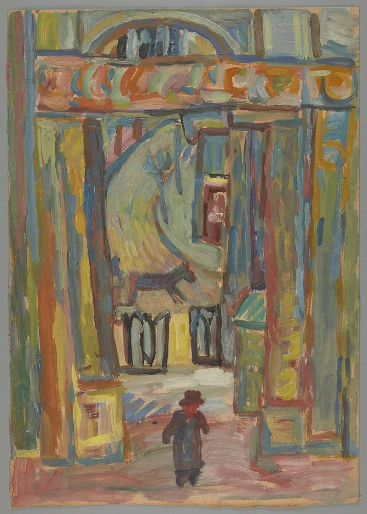 I "Homme devant l'entrée du jardin" fångar Sasza Blonder ett ögonblick av introspektion och eftertanke. Kompositionen, centrerad kring mannens silhuett, framkallar en atmosfär av mystik och lugn. De mjuka färgerna och de delikata nyanserna i trädgården i bakgrunden skapar en slående kontrast till den mänskliga figuren, vilket understryker interaktionen mellan individen och naturen. Blonders teknik, som blandar realism och impressionism, möjliggör att förmedla en påtaglig känsla, och bjuder in betraktaren att reflektera över mannens tankar och känslor.