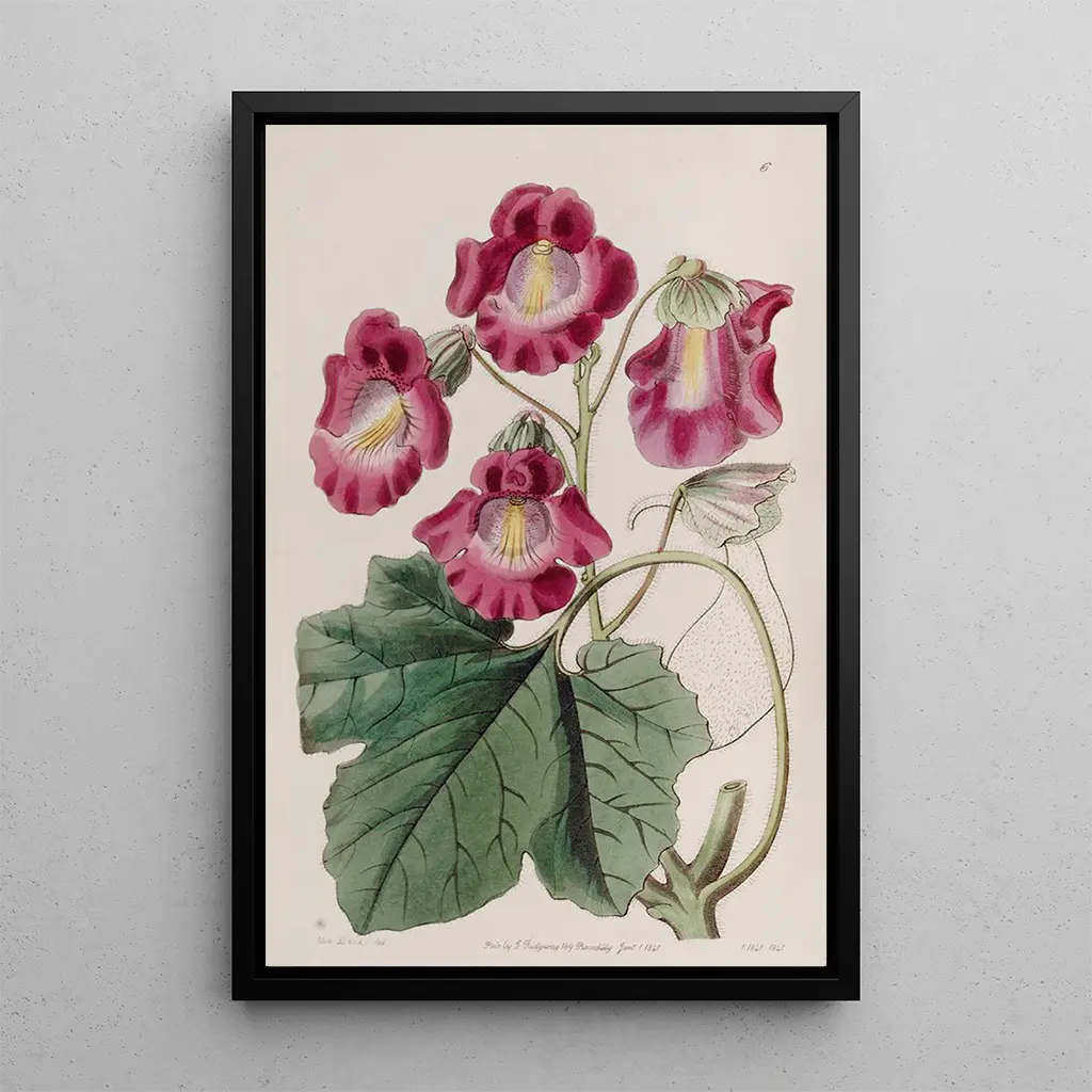 Konsttrycket av Martynie odorante av Sydenham Edwards är ett verk som framkallar känslan av ömtålighet och rikedom i blommornas värld. Med sina mjuka nyanser och eleganta former förflyttar denna målning betraktaren till en frodig trädgård där naturen blomstrar. De noggranna detaljerna i kronblad och blad, utförda med en förfinad teknik, skapar en atmosfär av lugn och skönhet. Varje element i kompositionen verkar berätta en historia och inbjuder till en visuell upptäcktsresa i botanikens underverk.