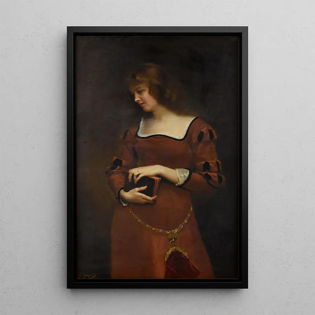 Gustave Jean Jacquet, fransk konstnär från 1800-talet, är erkänd för sina verk som fångar kvinnlig skönhet och mänskliga känslor. Påverkad av impressionismens rörelse, utvecklade han en stil som kombinerar finhet och känslighet. Aktiv under Belle Époque, utforskade Jacquet ofta teman relaterade till natur och vardagsliv, med fokus på kvinnliga figurer i eftertänksamma poser. Hans arbete har hyllats för sin förmåga att förmedla djupa känslor, vilket gör honom till en viktig konstnär under sin tid, vars arv lever vidare genom hans konsttryck.