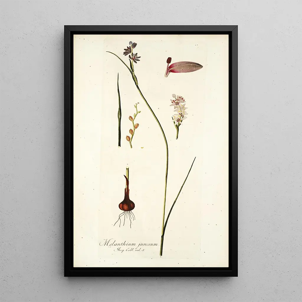 Konsttrycket av Melanthium junceum är ett perfekt val för att försköna ditt hem, oavsett om det är i ett vardagsrum, ett kontor eller ett sovrum. Dess utskriftskvalitet och trohet mot de ursprungliga färgerna garanterar en oemotståndlig estetisk attraktion. Detta konsttryck, med sin lugnande atmosfär, tillför en naturlig touch till din inredning samtidigt som det väcker beundran hos dina gäster. Genom att välja denna väggbonad, väljer du ett verk som förenar skönhet och vetenskap, och samtidigt berikar ditt boende med en tidlös elegans.