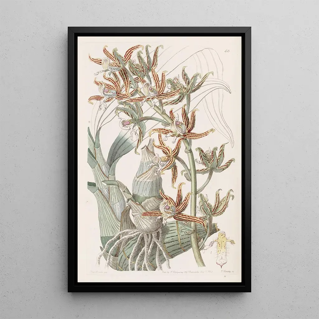 Sydenham Edwards, aktiv i början av 1800-talet, är erkänd som en av de stora namnen inom botanisk illustration. Påverkad av de vetenskapliga upptäckterna under sin tid, lyckades han kombinera precision och estetik i sina verk. Hans illustrationer, inklusive Mermodes strié, vittnar om en tid då naturen var både ett studieobjekt och en källa till konstnärlig inspiration. Edwards bidrog till att popularisera botaniken genom sina verk, som har blivit referenser för forskare och konstälskare. Hans unika stil, som blandar realism och romantik, präglade sin tid och fortsätter att influera samtida konstnärer.