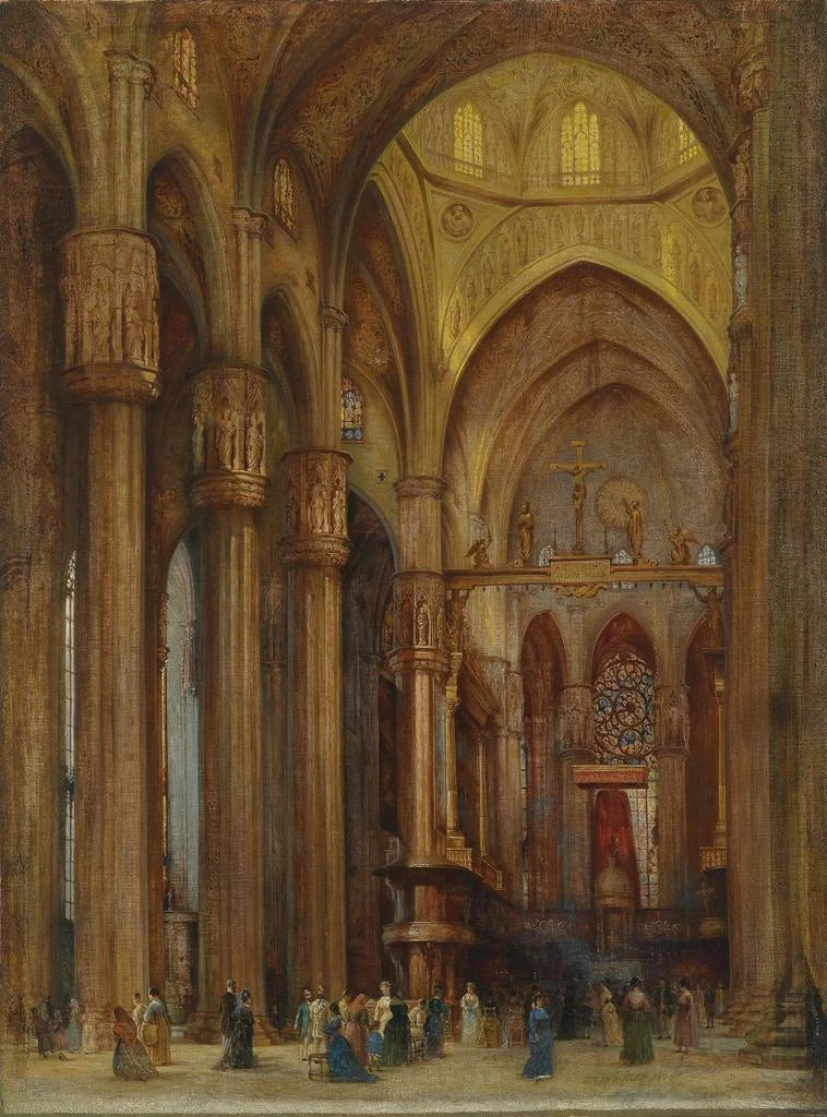 Franz Alt, född 1815, är en målare vars verk har präglat 1800-talet. Uppvuxen i en konstnärlig miljö, utvecklade han en stil som förenar realism och romantik. Hans passion för arkitektur och natur speglas i hans målningar, där varje detalj är noggrant observerad och rekonstruerad. Alt påverkades också av de stora mästarna inom landskapsmåleri, men han lyckades skapa en egen identitet, där han lyfte fram platsers särdrag som han avbildade. Katedralen i Milano, som en symbol för