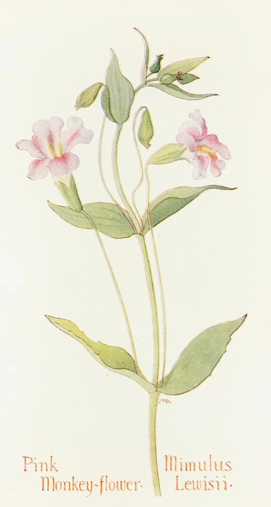 Målning Mimulus rosa - Margaret Armstrong | Konsttryck