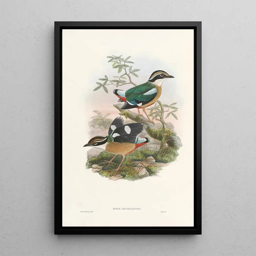John Gould, en framstående figur från 1800-talet, har satt avtryck i konst- och vetenskapshistorien genom sina fågelillustrationer. Hans passion för fåglar ledde honom att resa världen runt, samla in exemplar och göra djupgående studier. Påverkad av naturalismen lyckades han förena konst och vetenskap, vilket gör hans verk både precisa och estetiskt tilltalande. Konsttrycket av Monografi av Pittidae Pl01 är ett perfekt exempel på hans metod, där varje detalj noggrant observeras och återges. Hans arv lever vidare idag, som ett bevis på vikten av att bevara den biologiska mångfalden.