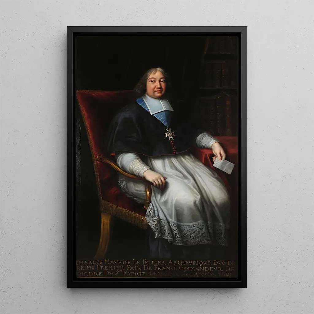 Konsttrycket av Monseigneur Charles-Maurice Le Tellier är ett dekorativt föremål som harmoniskt passar in i olika utrymmen som vardagsrummet, kontoret eller sovrummet. Dess utskriftskvalitet och troheten mot originalverkets detaljer gör det till ett perfekt val för konst- och historieentusiaster. Denna tavla, med sin imponerande närvaro, fångar blickar och väcker samtal, och tillför en touch av sofistikering till ditt hem. Genom att välja denna duk, väljer du ett verk som inte bara förskönar ditt utrymme, utan också berikar din visuella kultur.