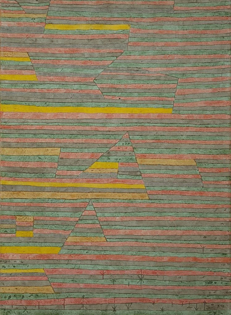 Paul Klee, schweizisk konstnär född 1879, är en av de ikoniska figurerna inom expressionismen och Bauhaus. Hans karriär, rik och varierad, präglas av många influenser, från afrikansk konst till musik och folkkonst. Klee utvecklade ett unikt visuellt språk, där abstraktion och figurering möts. "Monuments à G" ingår i en period då modern konst strävar efter att frigöra sig från traditionella konventioner, och Klee, med sin lekfulla och poetiska ansats, bidrar till att omdefiniera konstens gränser. Hans arv består och inspirerar många samtida konstnärer att utforska de emotionella och symboliska dimensionerna av färg och form.