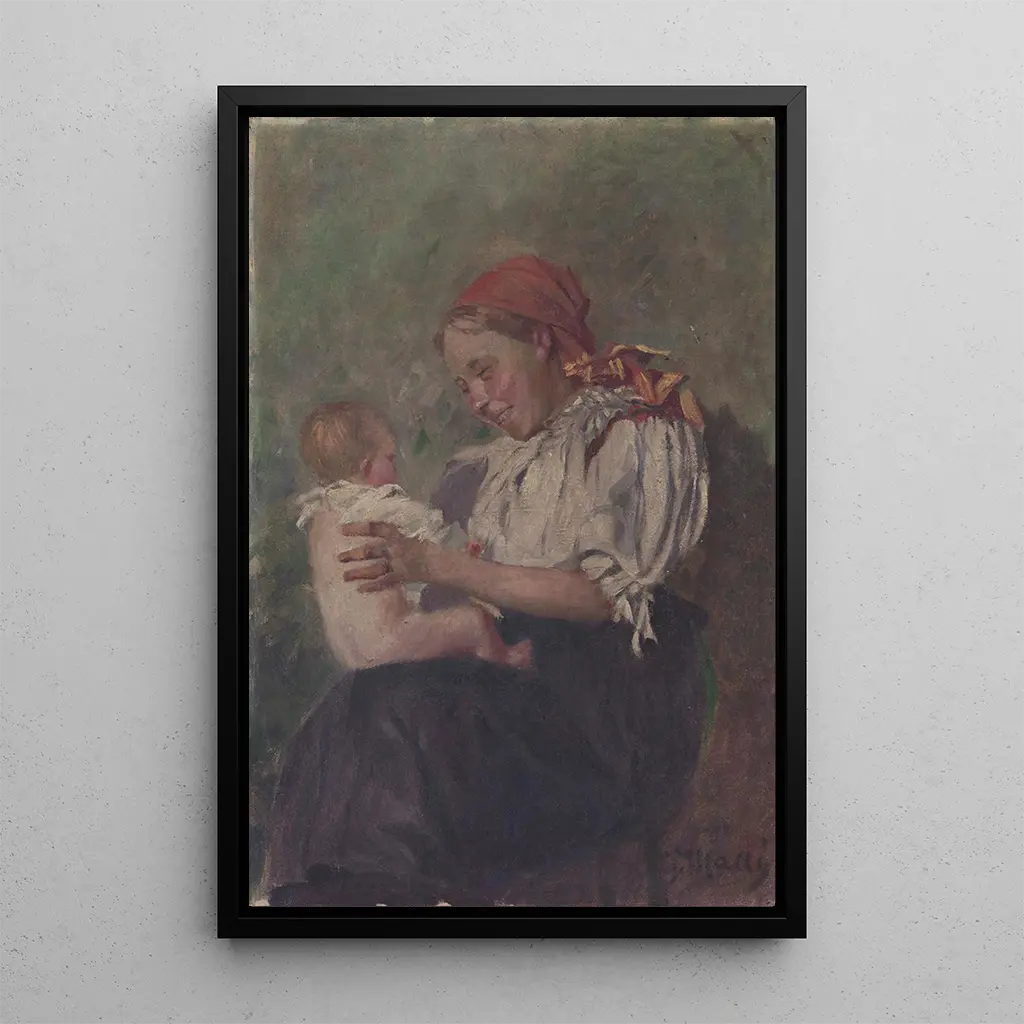Konsttrycket "Mère avec enfant" av Gustav Mahler skildrar en scen fylld av mildhet och ovillkorlig kärlek. Pastellfärger, delikata och lugnande, framkallar värmen från ett hem och den maternella ömheten. Kompositionen, centrerad kring interaktionen mellan modern och hennes barn, skapar en intim och tröstande atmosfär. Mahler's teknik, som kombinerar realism och impressionism, möjliggör fångsten av den rena känslan i detta flyktiga ögonblick. Varje penseldrag verkar berätta en historia, den om en djup kärlek och en orubblig förbindelse.