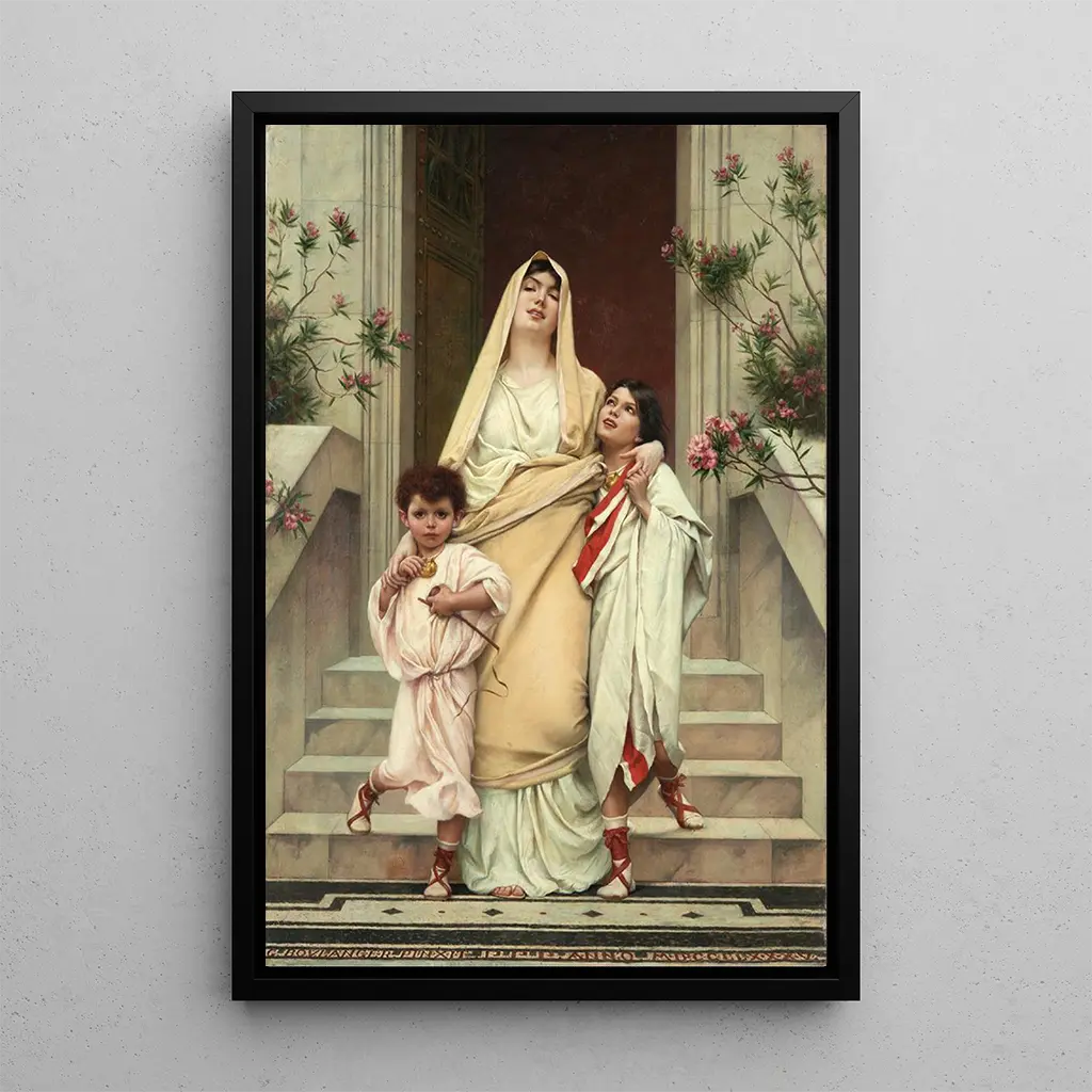 La konsttryck av "Mamman till Gracquerna" av Gustave Boulanger är ett gripande verk som lyfter fram den modersfiguren i ett rikt historiskt sammanhang. Kompositionen, centrerad kring en kvinna med en bestämd blick, förmedlar styrka och motståndskraft. De jordnära färgerna och de noggranna detaljerna i de historiska kläderna fördjupar betraktarens intryck av det romerska antikens värld, medan modersuttrycket förmedlar en tydlig känsla. Detta konsttryck inbjuder till reflektion över kvinnors roll i historien, samtidigt som det hyllar deras tysta men kraftfulla inflytande.