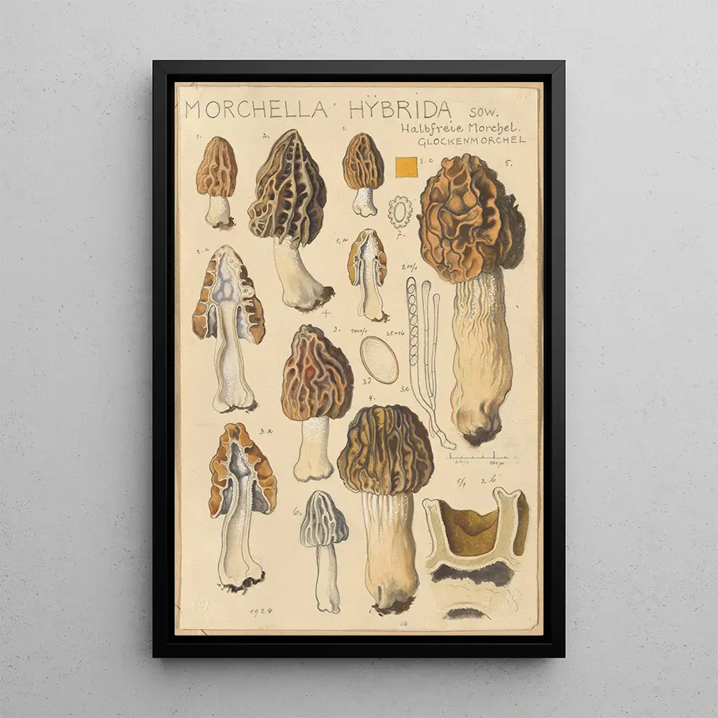 Konsttrycket av Morchella hybrida förflyttar oss till en värld där den biologiska mångfalden lyfts fram med en anmärkningsvärt fin känsla för detaljer. De mjuka nyanserna och de organiska formerna flätas samman för att skapa en harmonisk komposition, som framkallar rikedomarna i skogsekosystemen. Hans Baldungs teknik, som förenar precision och uttrycksfullhet, gör det möjligt att fånga den flyktiga skönheten hos svamparna, samtidigt som den förmedlar en atmosfär av mystik och upptäckarglädje. Detta konsttryck inbjuder till eftertanke och förundran inför naturens underverk.