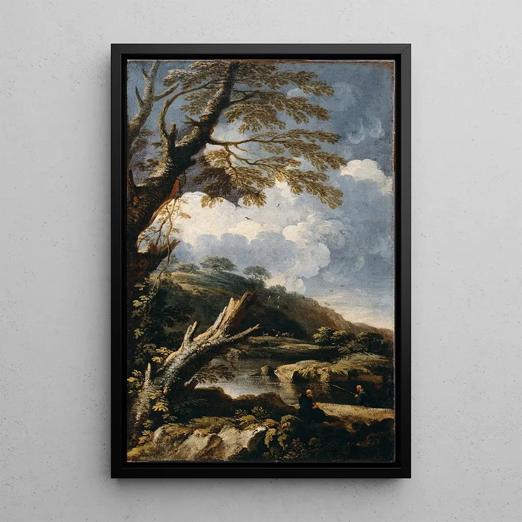 Salvator Rosa, målare och poet från 1600-talet, är erkänd för sin djärva stil och sin förmåga att fånga djupa känslor. Påverkad av barockrörelsen, lyckades han förena realism och fantasi, och skapa verk som överskrider det enkla landskapet. Hans karriär, präglad av resor genom Italien och möten med andra konstnärer, berikade hans konstnärliga tillvägagångssätt. Rosa har ofta utforskat mystiska och dramatiska teman, och "Moines pêchant" passar perfekt in i denna tradition, vilket speglar hans intresse för spiritualitet och natur. Hans arv består, och inspirerar många samtida konstnärer.