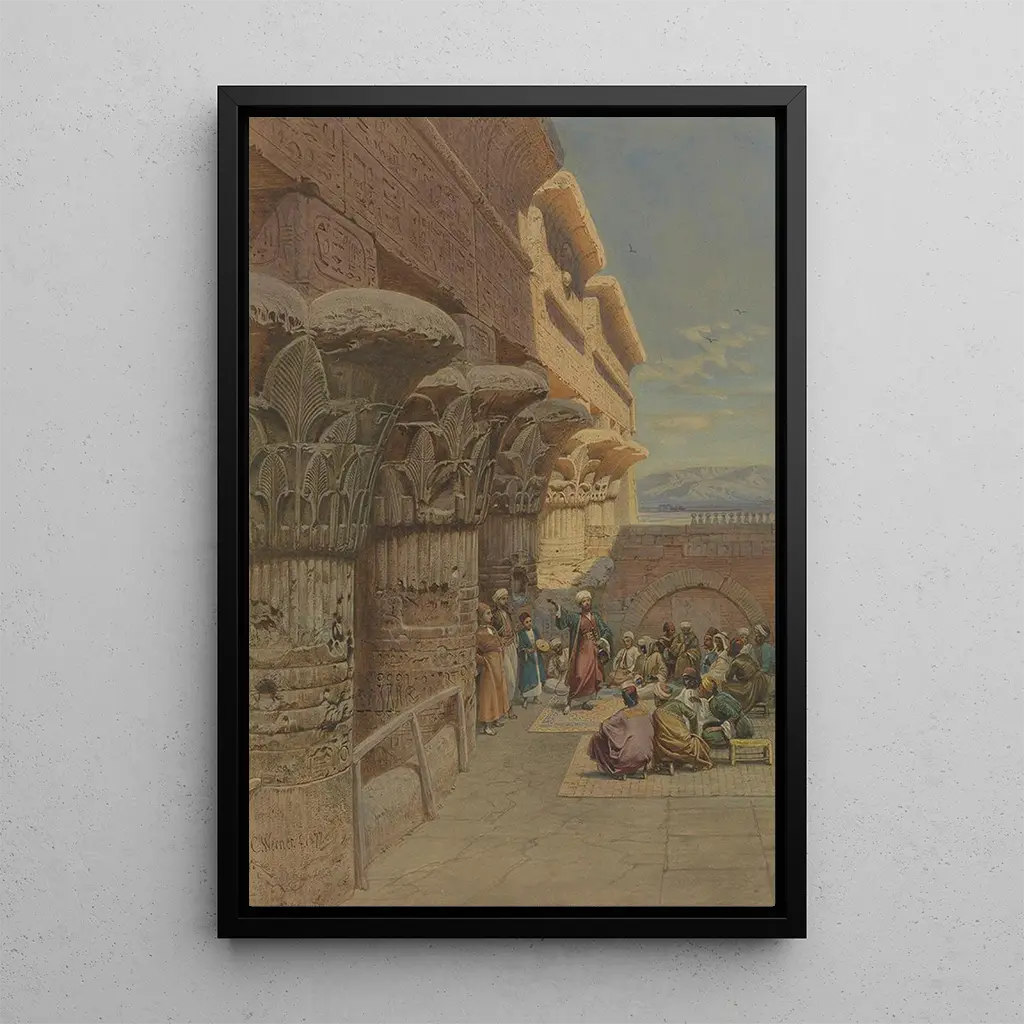 Konsttrycket "Musiciens à Philæ" av Carl Friedrich Heinrich Werner tar oss med till en livfull värld där musik och egyptisk kultur flätas samman. De varma, gyllene färgerna framkallar solljuset över antika ruiner, medan figurerna av musiker, klädda i traditionella kostymer, tycks dansa i takt med sina instrument. Werners teknik, som blandar realism och romantik, skapar en förtrollande atmosfär, där varje detalj – från musikerna uttryck till klädernas mönster – bidrar till en levande och dynamisk scen. Detta konsttryck inbjuder till djup eftertanke och avslöjar skönheten och rikedomarna i det kulturella livet vid Philæ.