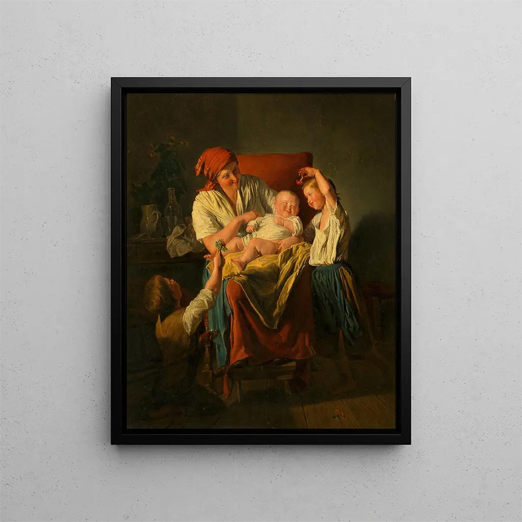 I det stora konsthistoriska panoramat utmärker sig vissa verk genom sin förmåga att fånga djupa och universella känslor. "Mutterglück" av Ferdinand Georg Waldmüller är ett tydligt exempel. Målad på 1800-talet, väcker detta verk ömhet och skönhet i familjebanden, och föreställer en mor och hennes barn i ett ögonblick av mjuk intimitet. Waldmüller, med sin genomträngande blick och känslighet, lyckas transcendera det enkla porträttet för att erbjuda en reflektion över moderskap och den glädje det ger upphov till. Konsttrycket av detta verk ger möjlighet att fördjupa sig i konstnärens emotionella universum, samtidigt som det hyllar skönheten i mänskliga relationer.