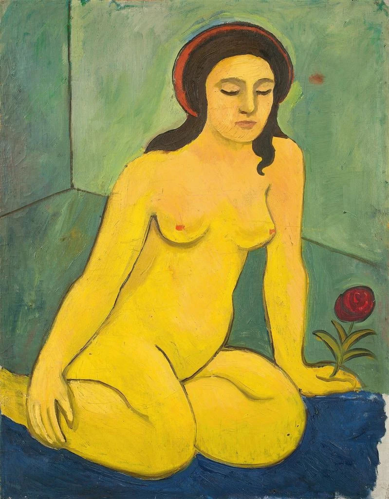 Konsttryck | Naken flicka med en röd blomma - August Macke