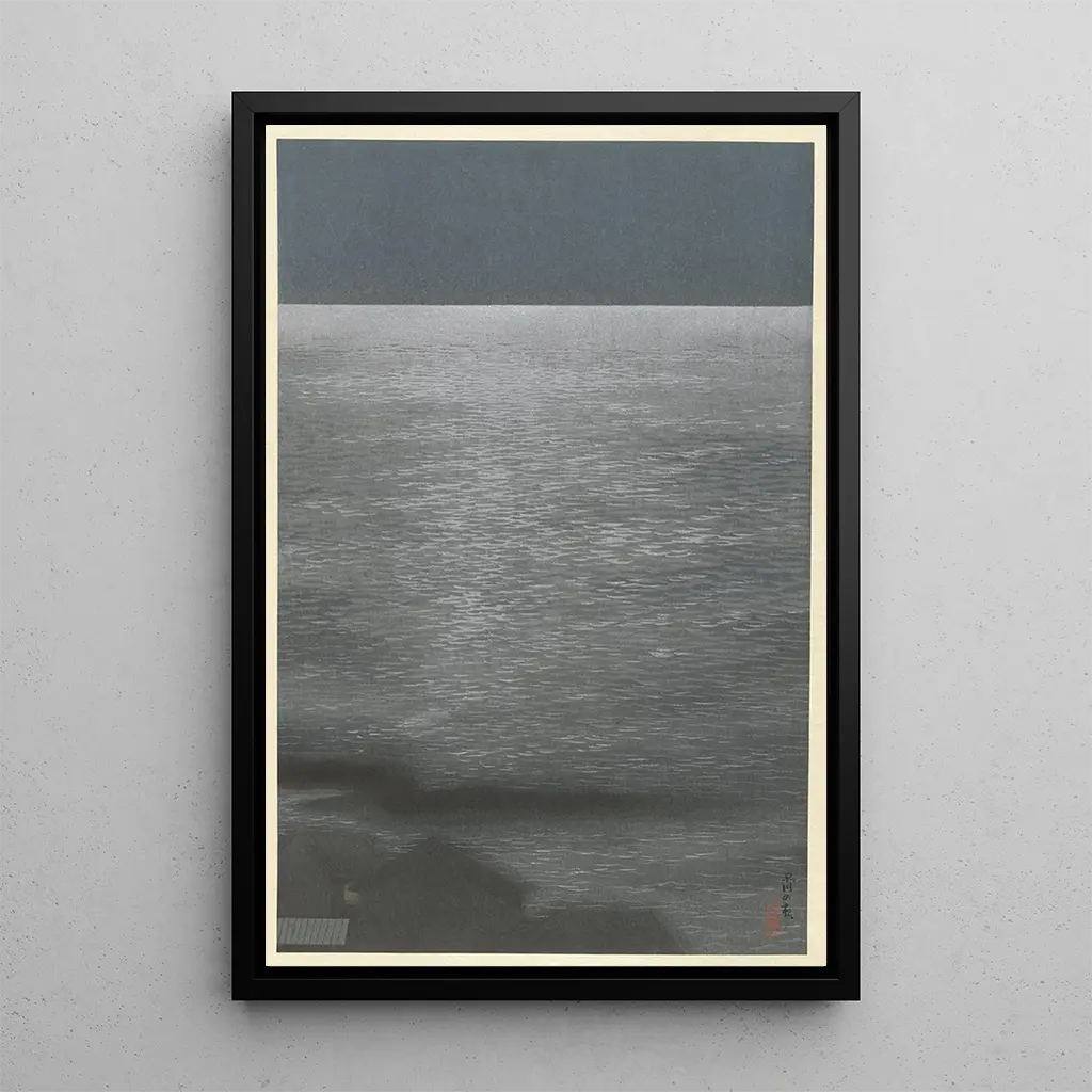 Konsttrycket av Nuit à Shinagawa, verk av den japanske mästaren Negoro Raizan, förflyttar betraktaren till en värld fylld av mystik och lugn. De mörka nyanserna, förhöjda av ljusa inslag, framkallar den flyktiga skönheten av en stjärnklar natt. Tekniken för ukiyo-e, som är karakteristisk för japansk konst, möjliggör fångsten av landskapens och människogestaltningarnas finhet, och skapar en atmosfär som är både nostalgisk och eftertänksam. Varje detalj, från reflektionerna på vattnet till trädens silhuetter, bidrar till en harmonisk komposition som inbjuder till drömmande reflektion.
