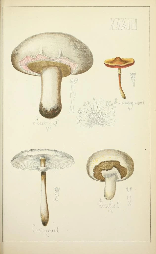 Konsttrycket av målningen Histoire naturelle des champignons Pl33 är ett dekorativt föremål som kan försköna vilket som helst utrymme, vare sig det är ett vardagsrum, ett kontor eller ett sovrum. Dess utskriftskvalitet och trohet mot de ursprungliga detaljerna gör det till ett perfekt val för natur- och vetenskapsentusiaster. Den estetiska dragningskraften hos detta konsttryck ligger i dess förmåga att väcka nyfikenhet och skapa samtal. Genom att integrera detta verk i din inredning ger du ditt hem en touch av elegans och lärdom, samtidigt som du hyllar naturens underverk.