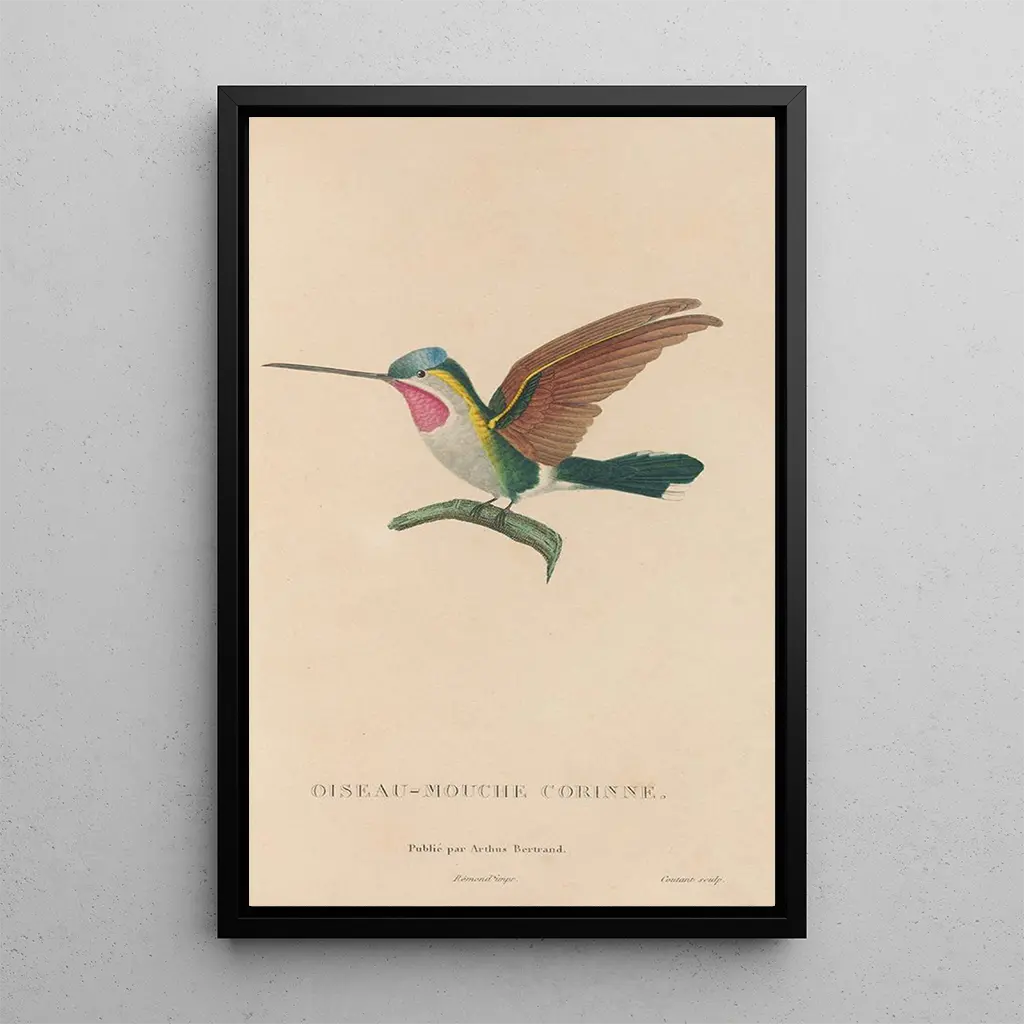 Konsttrycket Histoire naturelle des oiseaux-mouches Pl02 är ett värdefullt tillskott till varje konstsamling. Perfekt för att dekorera ett vardagsrum, ett kontor eller ett sovrum, ger denna väggbonad en touch av natur och färg till ditt utrymme. Dess utskriftskvalitet garanterar en anmärkningsvärt trogen återgivning av detaljer och färger i det ursprungliga verket, vilket ger ett oemotståndligt visuellt intryck. Genom att välja detta konsttryck skapar du en lugn och inspirerande miljö, samtidigt som du hyllar skönheten i fågelfaunan. Det är ett stycke som kommer att tilltala konst- och naturälskare och samtidigt berika din inredning.