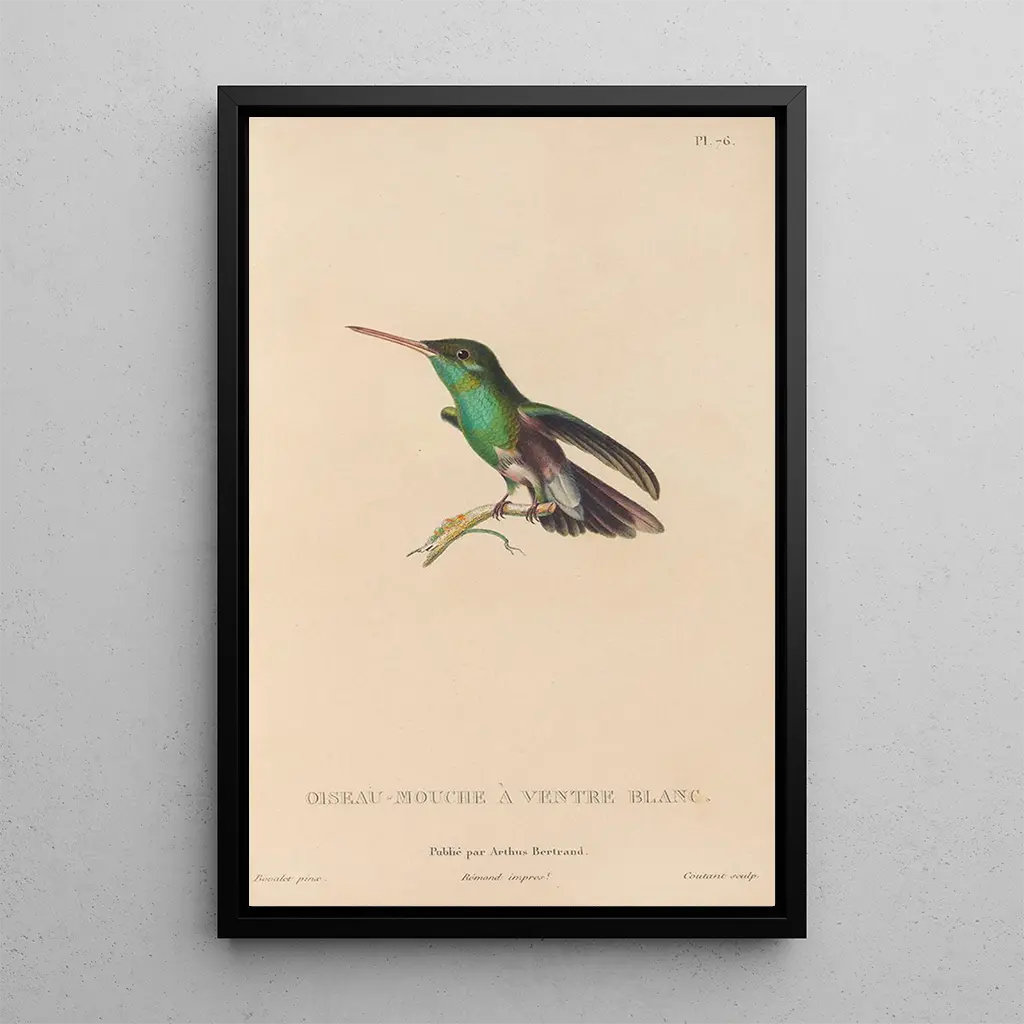 Konsttrycket Histoire naturelle des oiseaux-mouches Pl77 är ett perfekt dekorativt föremål för att berika ditt hem, oavsett om det är i ett vardagsrum, ett kontor eller ett sovrum. Dess tryckkvalitet och trohet mot originaldetaljer gör det till ett attraktivt val för konst- och naturälskare. Med sin raffinerade estetik ger denna canvas en touch av friskhet och lätthet till vilket utrymme som helst. Genom att välja detta verk, väljer du en tavla som inte bara förskönar din inredning, utan också berättar en fascinerande historia om humlornas skönhet och René Primevère Lessons konstnärliga arv.