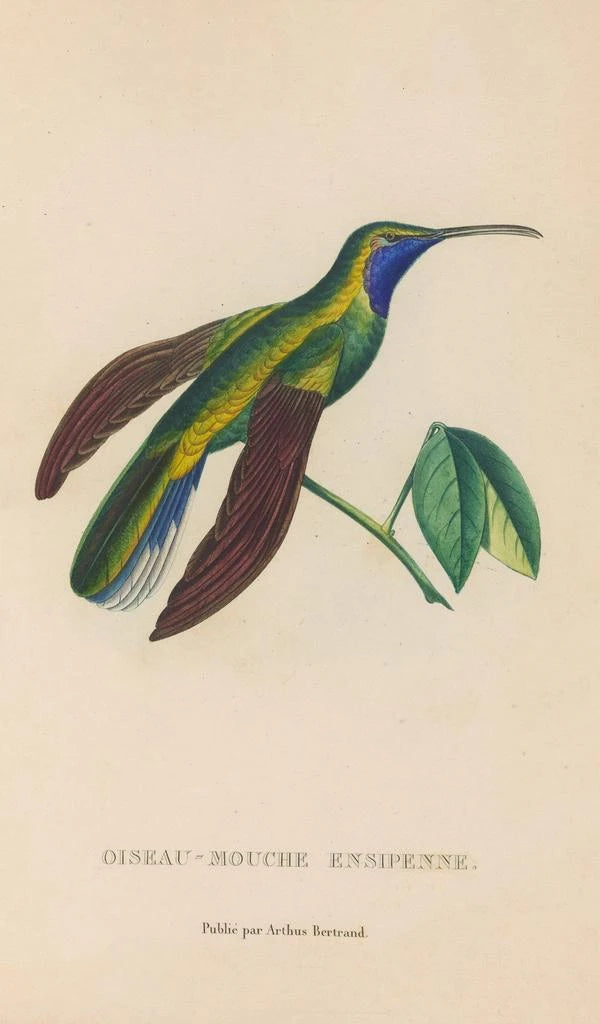 René Primevère Lesson, naturalist och illustratör från 1800-talet, lyckades förena vetenskap och konst i sina verk. Påverkad av de vetenskapliga upptäckterna från sin tid, ägnade han sin karriär åt att studera fåglar, särskilt de från Antillerna och Sydamerika. Hans noggranna metod och detaljfokus gjorde honom till en oumbärlig figur inom konstnärlig ornitologi. Genom sina konsttryck dokumenterade Lesson inte bara den fågelrika biodiversiteten, utan bidrog också till framväxten av en stil som förenar vetenskaplig precision med förfinad estetik.