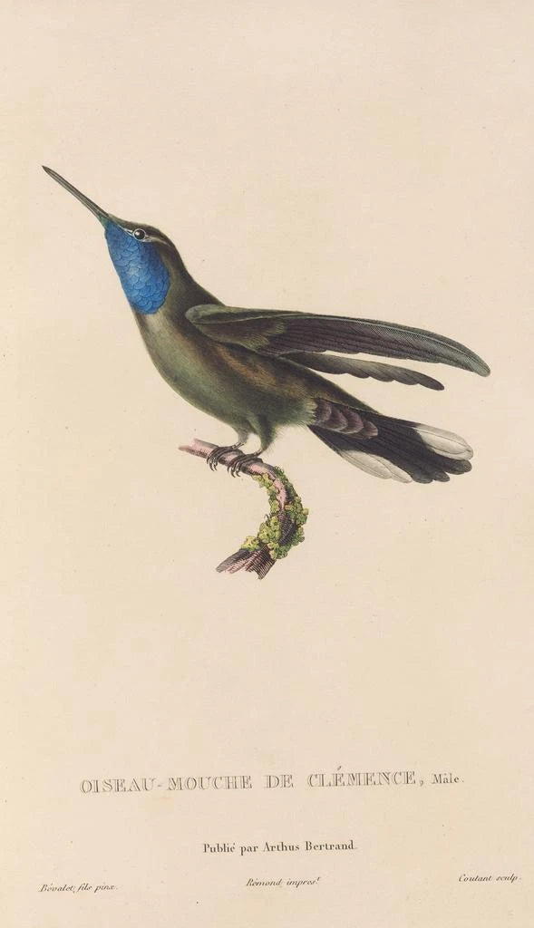 René Primevère Lesson, naturalist och ornitolog från 1800-talet, lyckades förena vetenskap och konst i sina verk. Utbildad vid naturens skola, påverkades han av tidens upptäckter, särskilt de som rörde utforskning av exotiska territorier. Hans arbete befinner sig i skärningspunkten mellan konst och biologi och bidrar till en bättre förståelse av fågelarter. Genom sina konsttryck dokumenterade han inte bara faunan, utan väckte också intresse för fåglarnas skönhet och mångfald, vilket gör honom till en viktig figur i ornitologisk illustrationhistoria.