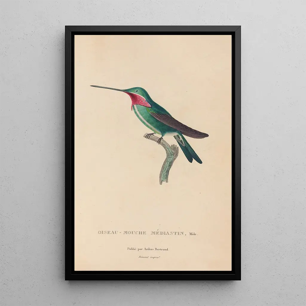 Konsttrycket av målningen Histoire naturelle des oiseaux-mouches Pl29 är ett perfekt dekorativt val för olika utrymmen som vardagsrum, kontor eller sovrum. Dess utskriftskvalitet garanterar en enastående trohet mot färger och detaljer i originalverket, och tillför en touch av natur och sofistikering till ditt hem. Den estetiska dragningskraften hos denna duk gör den till ett fängslande blickfång, som väcker beundran och samtal. Genom att integrera detta verk i din inredning, tillför du inte bara ett konstverk, utan också en hyllning till den vackra biodiversiteten.