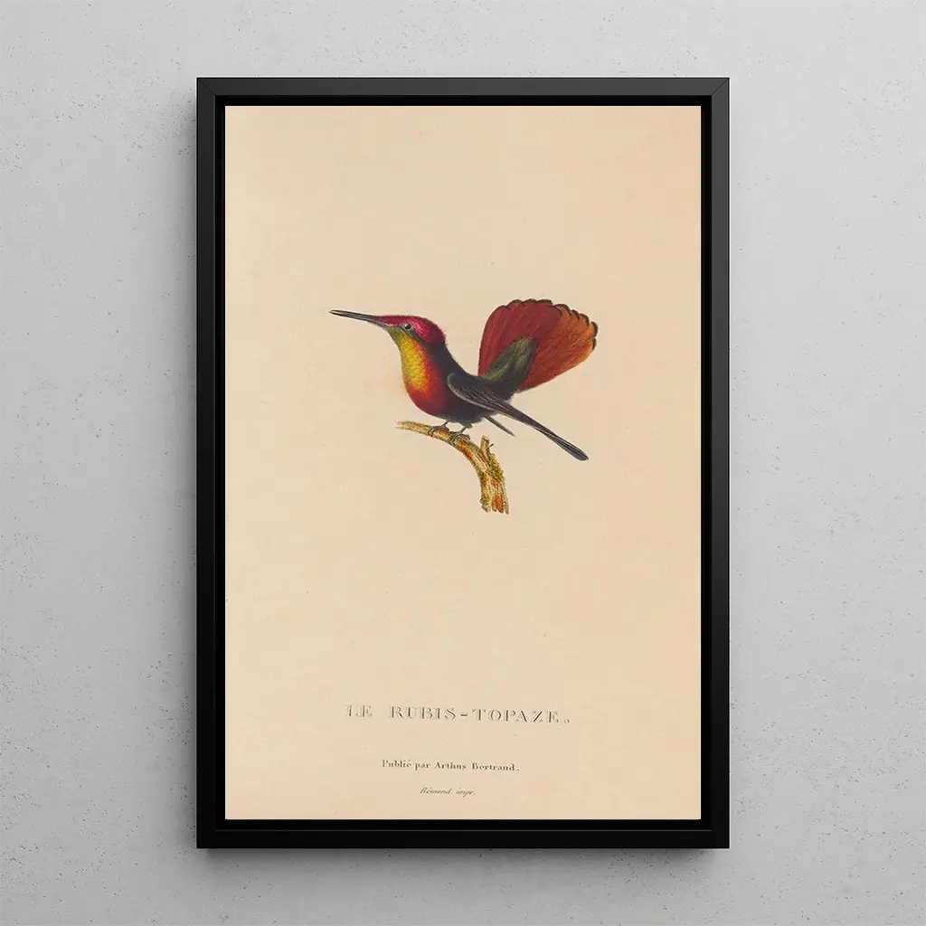 La konsttryck Histoire naturelle des oiseaux-mouches Pl53 se distingue par sa représentation saisissante de ces oiseaux fascinants. Chaque détail, des plumes délicates aux poses gracieuses, est rendu avec une précision remarquable, offrant une vision immersive de leur monde. Les couleurs éclatantes, allant des nuances vives aux teintes plus douces, créent une atmosphère vibrante qui attire immédiatement le regard. Cette œuvre, à la fois scientifique et artistique, invite à une contemplation attentive, révélant la beauté et la diversité des oiseaux-mouches dans leur habitat naturel.