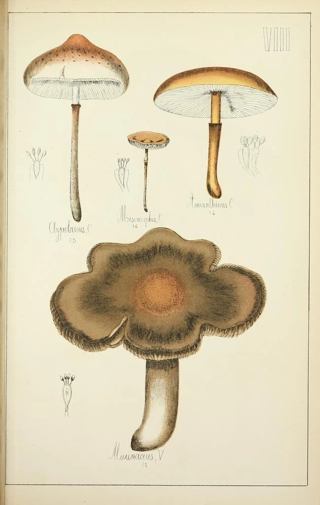 Målning av den naturliga historien om svampar Pl08 - Guillaume Sicard