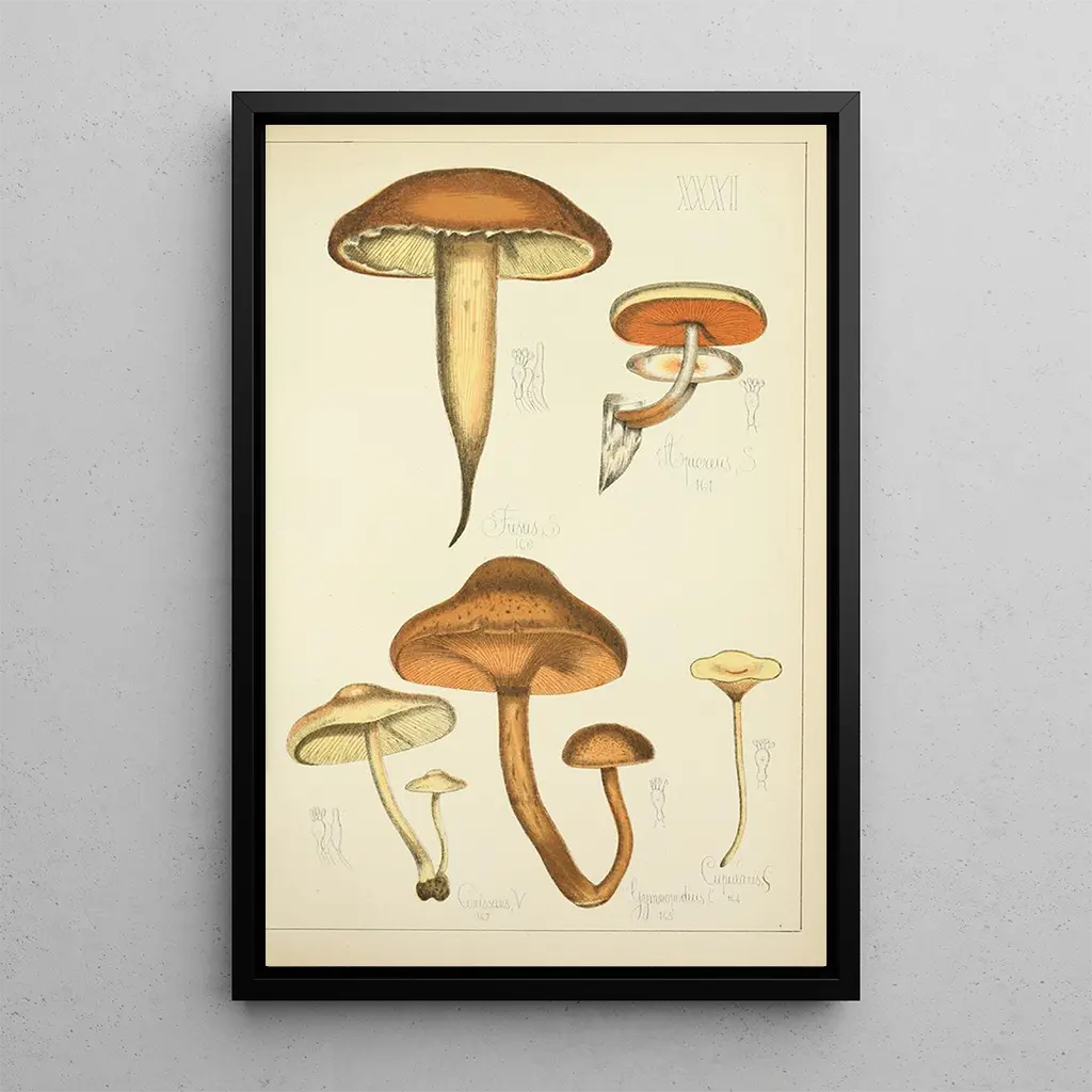 Konsttrycket av "Histoire naturelle des champignons Pl31" är ett perfekt dekorativt föremål för att berika ett vardagsrum, ett kontor eller till och med ett sovrum. Dess tryckkvalitet garanterar en trohet mot de ursprungliga detaljerna, samtidigt som det tillför en touch av elegans och nyfikenhet till ditt hem. Denna tavla drar till sig ögat med sin estetiska attraktion, samtidigt som den väcker samtal om naturen och vetenskapen. Genom att integrera detta konsttryck i din inredning ger du ditt utrymme en konstnärlig och pedagogisk dimension, som hyllar skönheten hos svampar och ett storartat konstnärs verk.