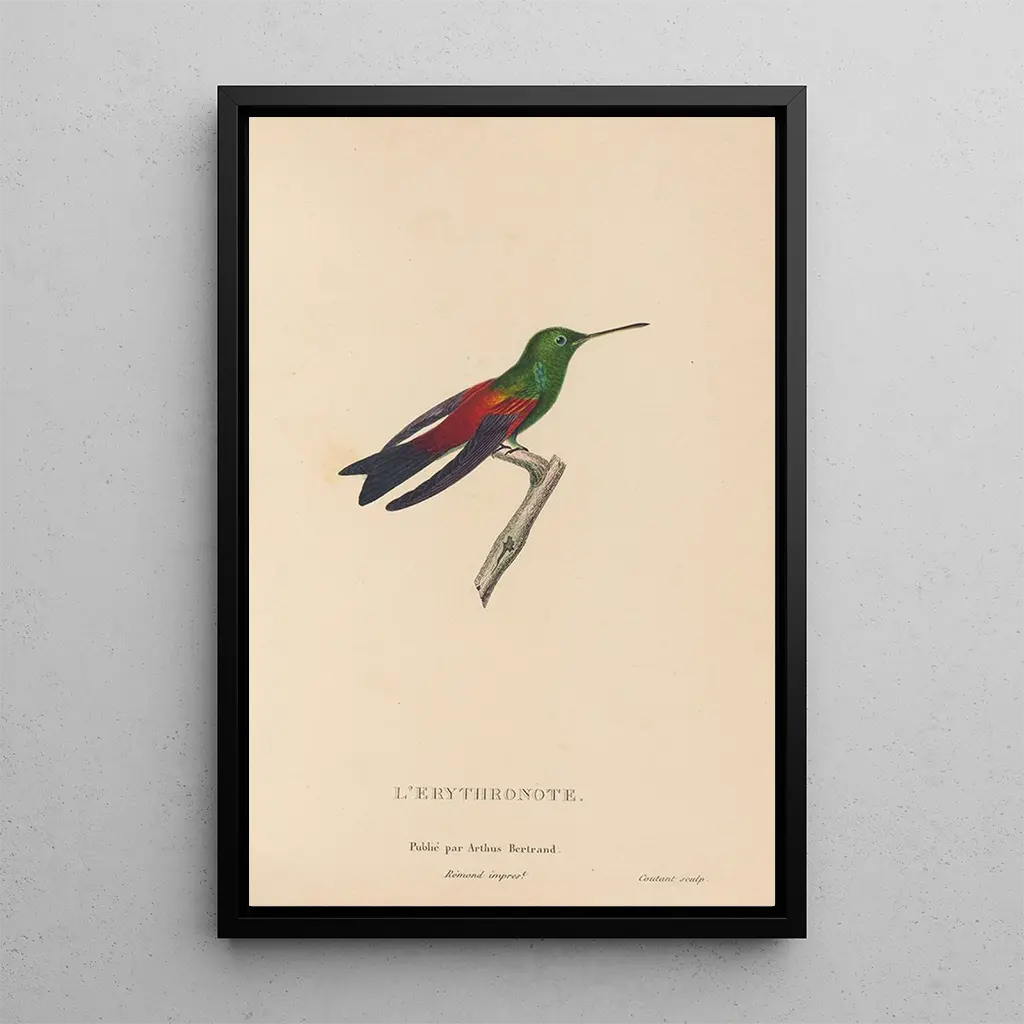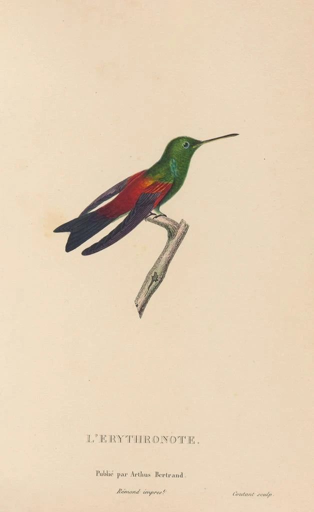 René Primevère Lesson, naturalist och ornitolog från 1800-talet, lyckades förena vetenskap och konst med bravur. Han verkade under en tid då studiet av fåglar var i stark tillväxt, påverkad av sina samtida upptäckter och fascinationen för biologisk mångfald. Hans arbete bidrog till en bättre förståelse av fågelarter, samtidigt som det erbjöd en estetisk ansats till ornitologin. "Histoire naturelle des oiseaux-mouches Pl62" ingår i denna tradition och gör Lesson till en nyckelfigur i utvecklingen av naturalistisk konst.