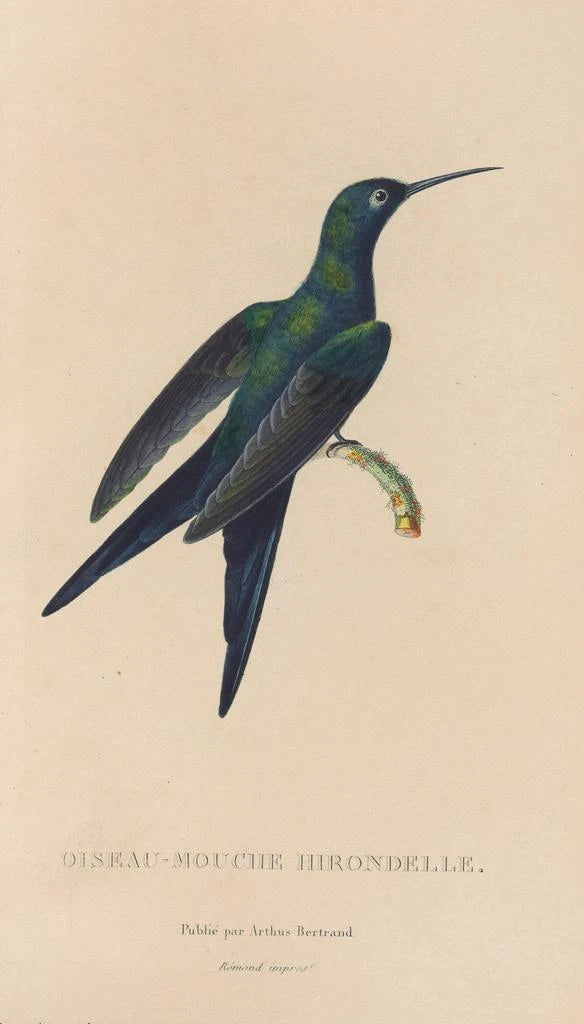 René Primevère Lesson, naturalist och illustratör från 1800-talet, präglade sin tid med sina bidrag till ornitologi och konst. Påverkad av de vetenskapliga upptäckter som gjordes under hans tid, lyckades han kombinera vetenskaplig noggrannhet med konstnärlig känslighet. Hans verk, inklusive konsttrycket Histoire naturelle des oiseaux-mouches Pl25, vittnar om hans engagemang för att avbilda faunan med oöverträffad precision. Lesson reste runt i världen, inspirerad av exotiska landskap och sällsynta arter han mötte. Hans arbete har inte bara berikat området för naturlig illustration, utan också ökat allmänhetens medvetenhet om fåglarnas skönhet och mångfald.