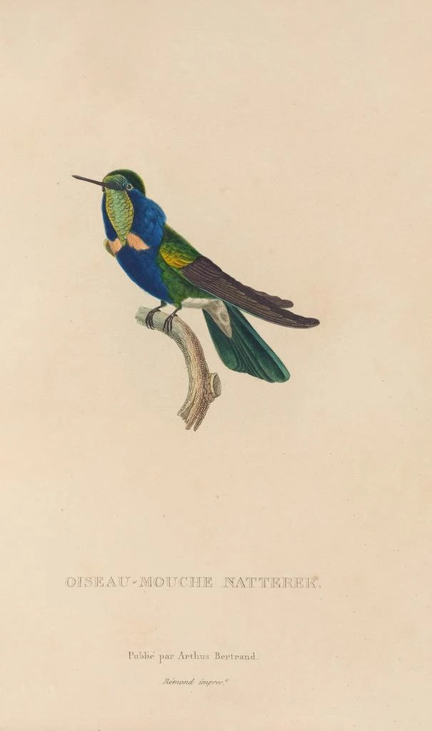 René Primevère Lesson, verksam under 1800-talet, är erkänd för sin innovativa ansats till ornitologi. Hans verk, inklusive "Histoire naturelle des oiseaux-mouches Pl16", vittnar om en tid då vetenskaplig utforskning och konst gick hand i hand. Påverkad av samtidens upptäckter lyckades han fånga essensen av fåglarna med en oöverträffad precision. Hans arv lever vidare genom hans illustrationer, som fortsätter att inspirera konst- och naturälskare. Lesson har därmed bidragit till att berika vår förståelse av fågelarter samtidigt som han erbjuder en unik konstnärlig vision.