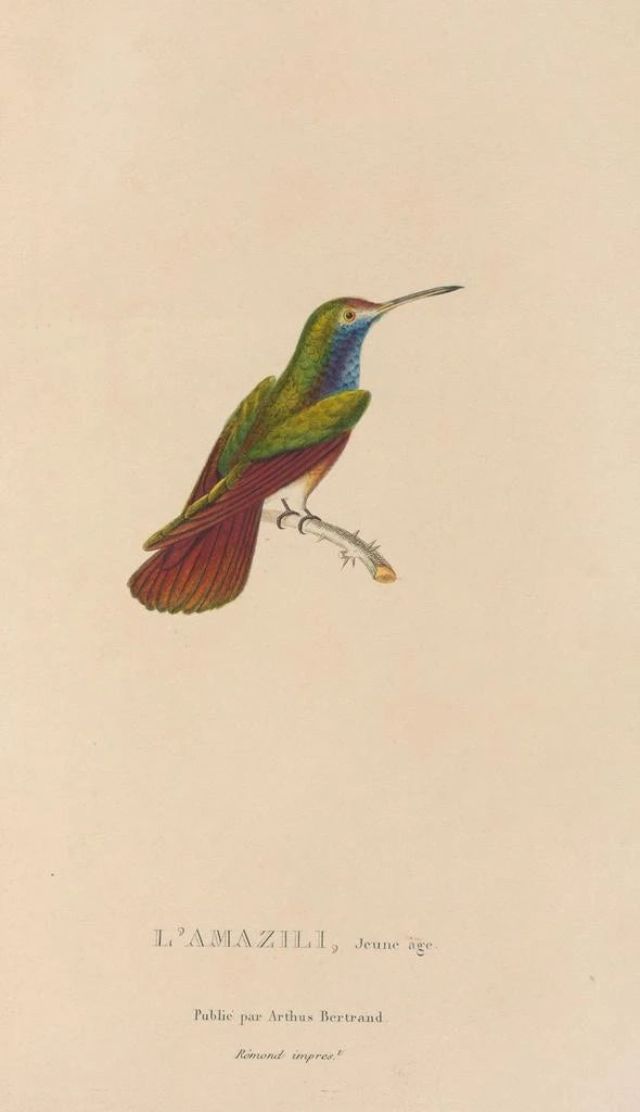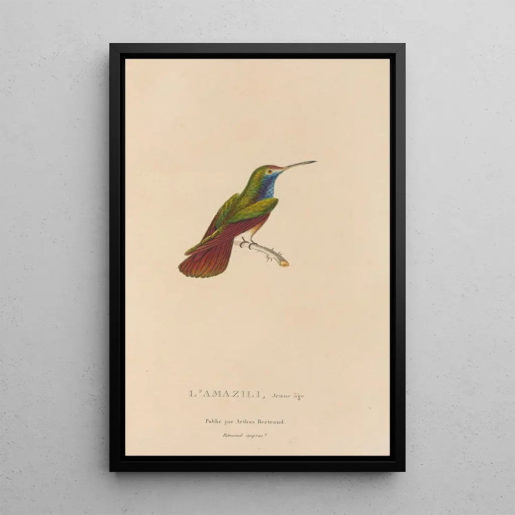 René Primevère Lesson, naturaliste et ornithologue du XIXe siècle, a joué un rôle essentiel dans l'étude des oiseaux. Actif durant la période romantique, il a su allier science et art, offrant des représentations précises et esthétiques de la faune aviaire. Influencé par les découvertes des explorateurs de son temps, Lesson a contribué à enrichir les connaissances sur les espèces exotiques. Ses œuvres, dont "Histoire naturelle des oiseaux-mouches Pl12", témoignent de son engagement à documenter la biodiversité tout en célébrant la beauté de la nature. Son héritage perdure, inspirant les artistes et les scientifiques à travers les âges.