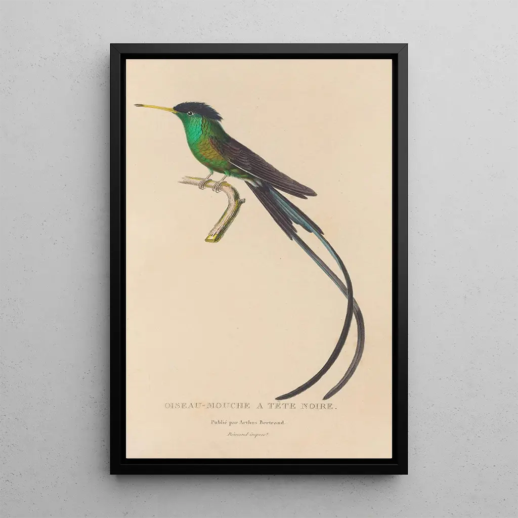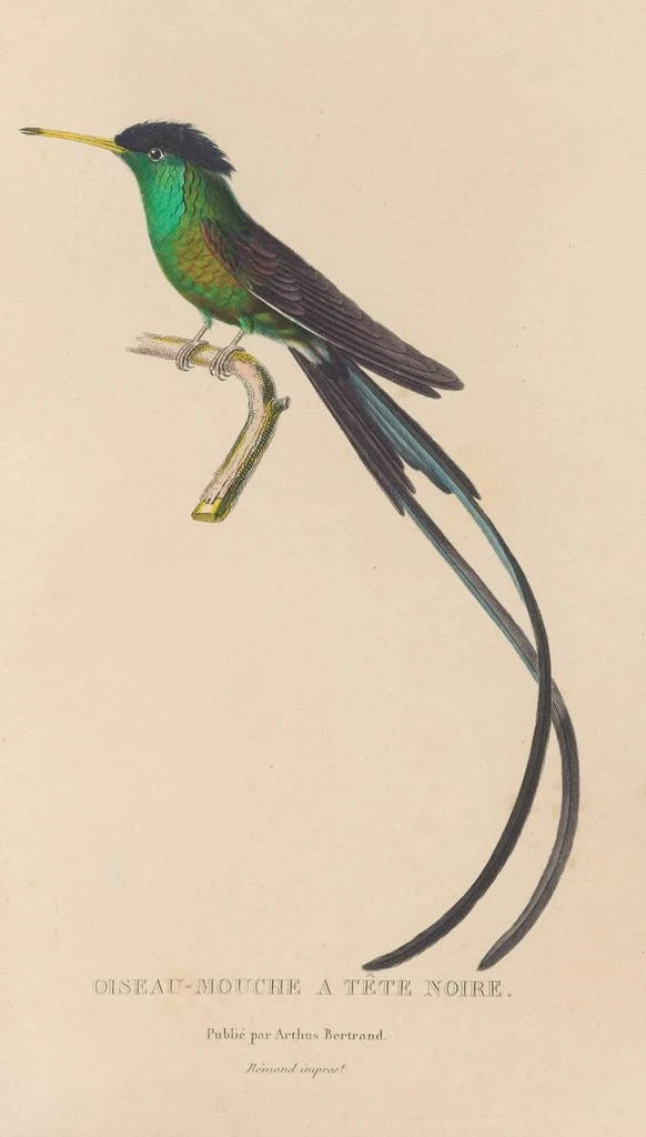 René Primevère Lesson, naturalist och ornitolog från 1800-talet, spelade en avgörande roll i studiet och framställningen av fåglar. Påverkad av de vetenskapliga upptäckterna från sin tid, lyckades han kombinera vetenskaplig noggrannhet med konstnärlig känsla. Hans verk, inklusive detta konsttryck Histoire naturelle des oiseaux-mouches Pl17, vittnar om hans engagemang för att dokumentera fågelfaunan samtidigt som han tillför en estetisk touch. Lesson bidrog till att berika kunskapen om fågelnätterna, dessa fascinerande varelser, och hans arv lever vidare genom hans illustrationer som fortsätter att inspirera naturälskare.