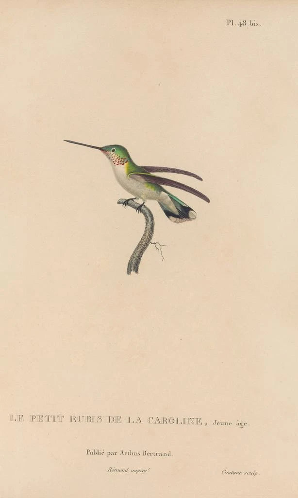René Primevère Lesson, naturalist och konstnär från 1800-talet, spelade en avgörande roll inom ornitologisk illustration. Hans arbete, inklusive "Histoire naturelle des oiseaux-mouches Pl49", speglar tidens entusiasm för studiet av fågelarter. Påverkad av de vetenskapliga upptäckterna under sin tid, lyckades han förena vetenskaplig precision med konstnärlig känslighet. Hans illustrationer har blivit referenser för ornitologer och konstälskare, och vittnar om hans unika talang. Lesson lyckades fånga inte bara fåglarnas utseende, utan också deras karaktär, vilket gör hans verk till ovärderliga skatter.