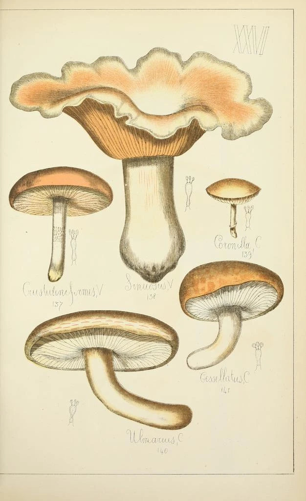 Histoire naturelle des champignons Pl26 : une exploration des formes et des couleurs