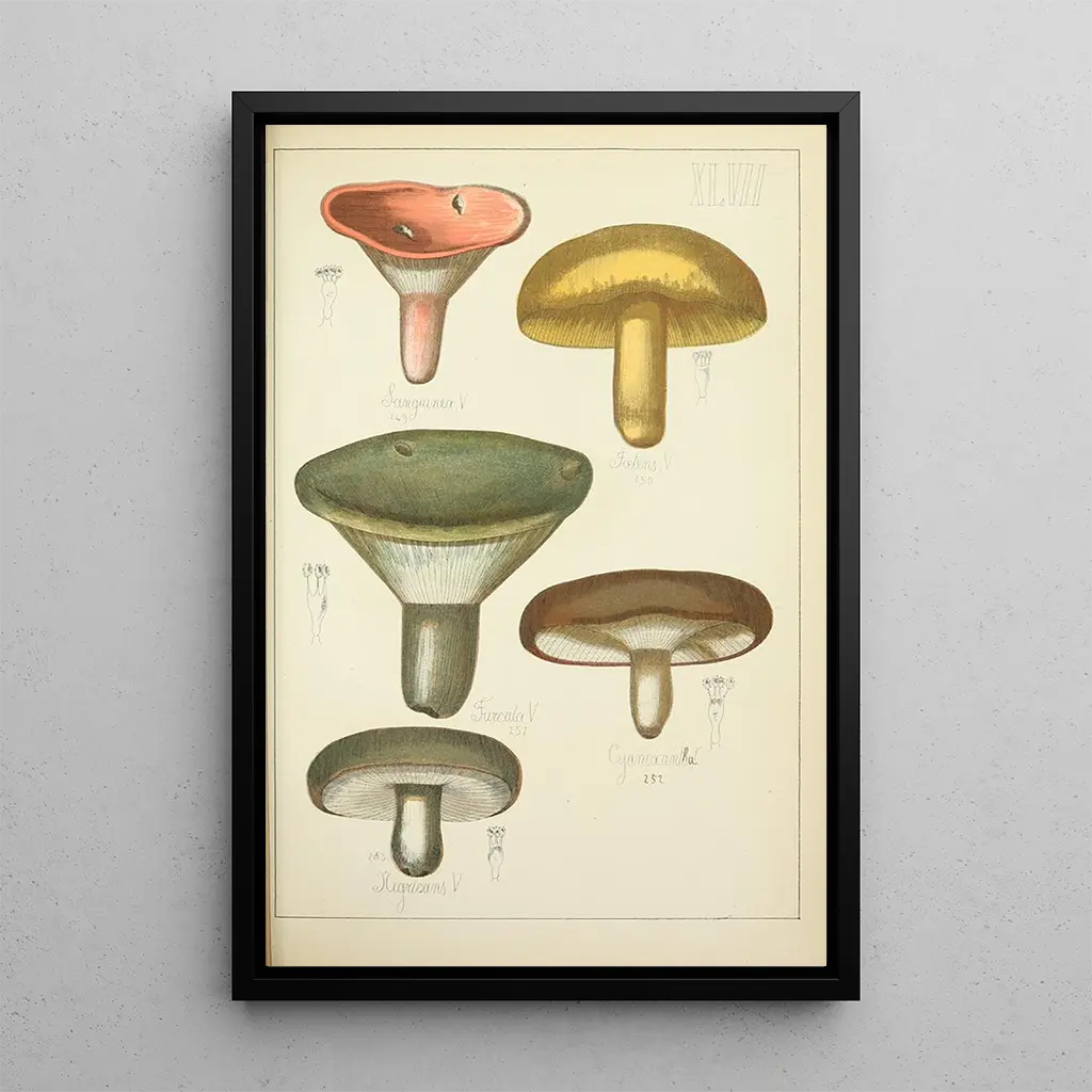 Konsttrycket av "Histoire naturelle des champignons Pl47" är ett perfekt dekorativt val för den som vill tillföra en originell touch till sitt utrymme. Oavsett om det är i ett kontor, ett vardagsrum eller ett sovrum, utmärker sig denna canvas genom sin utskriftskvalitet och trohet mot originalverken. Den erbjuder en unik estetik som kommer att tilltala botanikentusiaster och konstälskare. Genom att integrera detta konsttryck i din inredning skapar du en inspirerande och berikande miljö, samtidigt som du hyllar naturens skönhet i alla dess former.