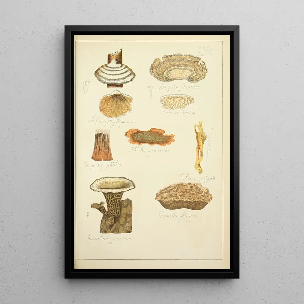 La konsttryck av tableauet Histoire naturelle des champignons Pl57 av Guillaume Sicard tar oss med till en värld där varje svamp är ett konstverk i sig. De delikata nyanserna och de minutiösa detaljerna av de olika arterna skapar en fängslande atmosfär, som avslöjar komplexiteten och skönheten i mykologi. Den harmoniska kompositionen inbjuder till noggrann observation, där varje element verkar berätta en unik historia. Detta verk, både vetenskapligt och konstnärligt, hyllar naturens rikedom och inspirerar till eftertanke.