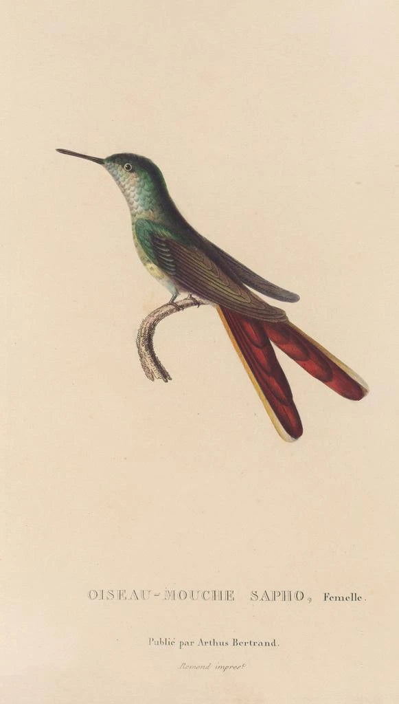 René Primevère Lesson är en fransk konstnär och naturalist från 1800-talet, vars arbete har präglat fågelillustrationen. Hans passion för fåglar och hans noggrannhet i detaljer har gjort det möjligt för honom att skapa verk som förenar vetenskaplig noggrannhet med konstnärlig känslighet. I en tid då vetenskaplig utforskning var i full blom, lyckades Lesson fånga naturens förundran genom sina illustrationer. Hans arv består och inspirerar generationer av konstnärer och vetenskapsmän världen över, och understryker vikten av biologisk mångfald.