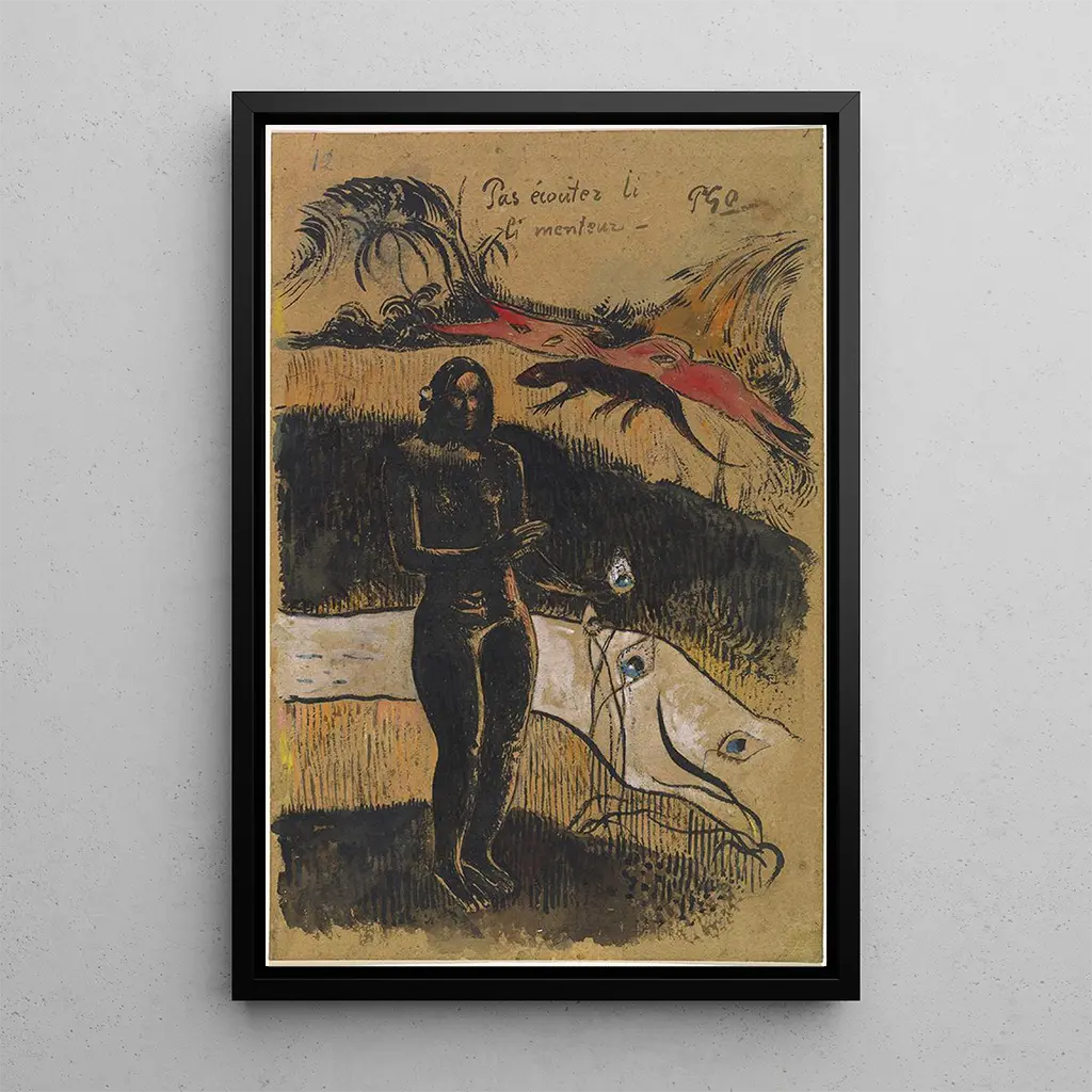 Reproduktionen av "Nave Nave Fenua" är ett dekorativt val som berikar ditt boende, oavsett om det är i ett vardagsrum, ett kontor eller ett sovrum. Dess utskriftskvalitet garanterar en anmärkningsvärt trogen återgivning av de livfulla färgerna och detaljerna i det ursprungliga verket, vilket ger en exotisk touch till ditt hem. Med sitt fängslande estetiska tilltal blir detta konsttryck en verklig blickfångare, som väcker beundran och eftertanke, samtidigt som det hyllar naturens skönhet och den flyktighet Gauguin lyckades fånga.