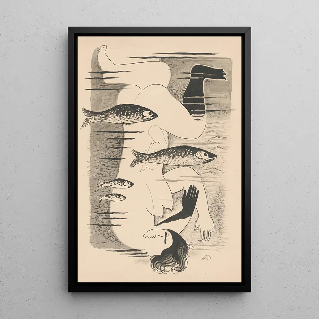 Konsttrycket av "Noyé" är ett djärvt val för dem som vill tillföra en känslomässig dimension till sin inredning. Oavsett om det är i ett vardagsrum, ett kontor eller ett sovrum, drar denna duk till sig uppmärksamhet och väcker djupa tankar. Dess tryckkvalitet garanterar en enastående trohet mot originalverket, vilket säkerställer ett starkt visuellt intryck. Genom att integrera detta verk i ditt utrymme, inte bara förskönar du din inredning, utan du inbjuder också till eftertanke och diskussion kring livets och dödens universella teman.