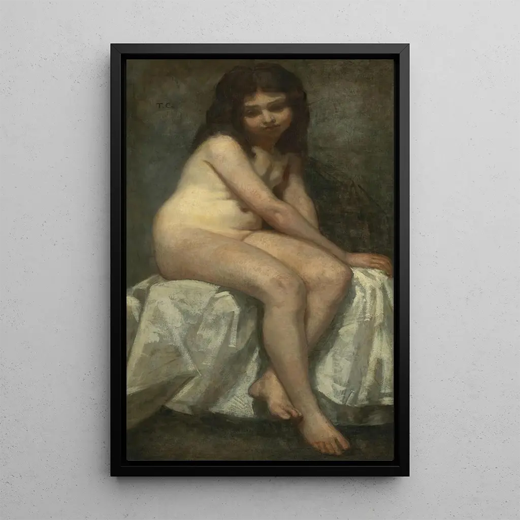 I detta ikoniska konsttryck fördjupar sig Thomas Couture i intimiteten av en kvinnlig nakenhet, där ljuset varsamt smeker modellens hud. De varma färgerna och de subtila nyanserna skapar en atmosfär som är både sensuell och kontemplativ. Couture's teknik, som blandar realism och idealisering, gör det möjligt att fånga inte bara formen utan också själva essensen av skönhet. Varje penseldrag verkar berätta en historia, inbjudande betraktaren att fördjupa sig i detta svävande ögonblick, där kroppen blir ett konstverk i sig.