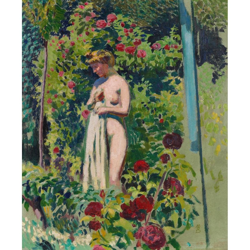 Dyk ner i den fängslande världen av konst med verket Nymphe aux Fleurs (Nu à la Draperie, dans le Jardin) skapat av Maurice Denis mellan 1906 och 1907. Detta ikoniska verk utmärker sig i konsthistorien tack vare sin unika utforskning av Nabi-rörelsen, som fokuserade på uttryck av känslor snarare än strikt realism. Maurice Denis, en av de främsta representanterna för denna rörelse, lyckades leka med färg och form för att erbjuda en ny uppfattning om kvinnlig skönhet och natur.