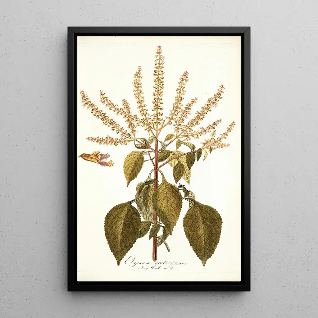 Konsttrycket "Ocymum gratissimum" är perfekt för att försköna ditt hem, oavsett om det är i ett vardagsrum, ett kontor eller ett sovrum. Dess utskriftskvalitet och visuella attraktion gör det till ett dekorativt stycke som kommer att fängsla dina gäster. Färg- och detaljrikedomen gör att man kan känna hela verket i dess prakt. Genom att integrera denna väggkonst i din inredning tillför du en touch av natur och elegans, samtidigt som du hyllar botanisk konst. Det är ett förvärv som berikar ditt hem och stimulerar din passion för naturen och konsten.