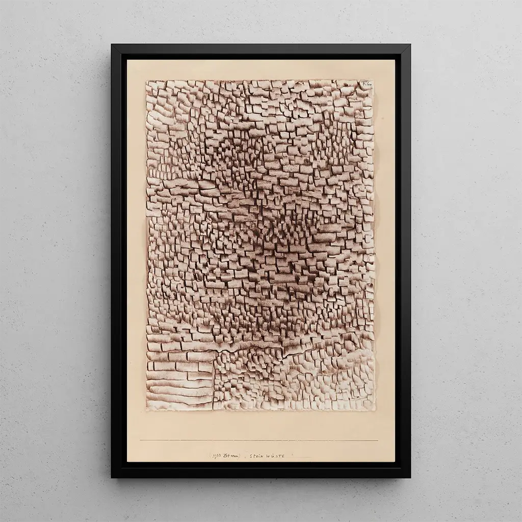 Paul Klee, född 1879 i Schweiz, är en ikonisk figur inom expressionism och surrealism. Påverkad av kubismen och naiv konsthantverk, utvecklar han en personlig stil som förenar abstraktion och figurativ konst. Klee är också en inflytelserik lärare vid Bauhaus, där han delar sin passion för färg och form. Hans konsttryck, inklusive "Désert de pierre", speglar en ständig strävan efter harmoni och balans, samtidigt som de utforskar den mänskliga själens djup. Hans konstnärliga arv består, och inspirerar generationer av konstnärer världen över.