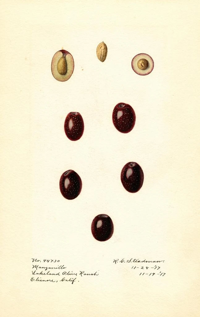Royal Charles Steadman, en amerikansk konstnär från början av 1900-talet, specialiserade sig på botanisk representation och fångade växternas skönhet med en anmärkningsvärt precision. Påverkad av sin tids konstströmmar lyckades han förena realism och poesi i sina verk. Hans passion för naturen och hans noggrannhet i detaljer gör honom till en oumbärlig konstnär inom botanisk konst. Konsttrycket Olea europaea Manzanillo vittnar om hans talang och engagemang för att hylla den naturliga landskapens skönhet, särskilt de från Medelhavet.