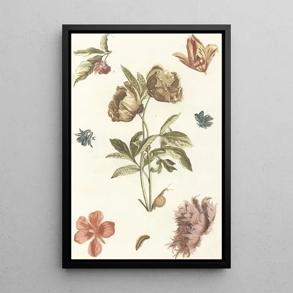 Detta konsttryck av "Olika blommor och en larv" visar sig vara ett perfekt dekorativt val för olika utrymmen, oavsett om det är i ett vardagsrum, ett kontor eller ett sovrum. Dess tryckkvalitet och trohet mot de ursprungliga detaljerna gör det till ett attraktivt stycke som kommer att fånga blickarna. Den livfulla färgpaletten tillför en frisk och vital känsla till ditt hem, samtidigt som den framkallar naturens skönhet. Genom att integrera detta konsttryck i din inredning ger du ditt utrymme en lugnande och inspirerande atmosfär, samtidigt som du hyllar blomsterkonsten i all sin prakt.