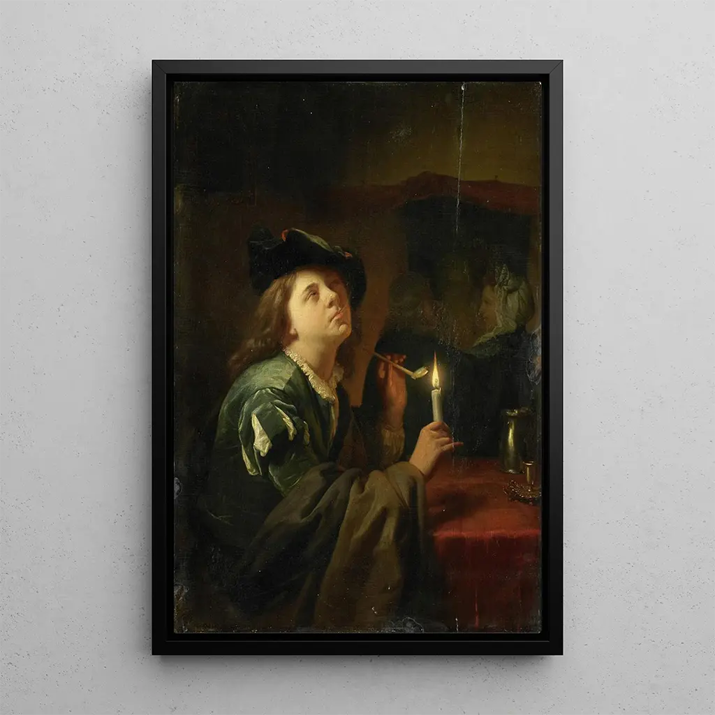 Godfried Schalcken, nederländsk konstnär från 1600-talet, är erkänd för sin skicklighet i chiaroscuro och sin förmåga att fånga ljuset. Uppvuxen i en konstnärlig tradition influerad av Rembrandt, utvecklar han en unik stil som kombinerar realism och känslighet. Hans verk, ofta fokuserade på genrebilder och porträtt, vittnar om en djup förståelse för människans natur. Schalcken lyckades etablera sig i sin tids konstvärld och lämnade ett bestående arv som fortsätter att inspirera samtida konstnärer. "Olika smaker" illustrerar perfekt hans delikata tillvägagångssätt och noggrannhet i detaljer, vilket gör honom till en oumbärlig figur inom nederländsk barock.