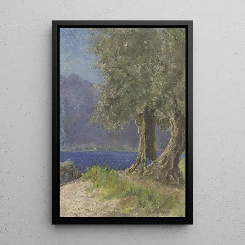 Konsttrycket av "Grupp av olivträd vid en italiensk sjö" är ett dekorativt föremål som kan försköna vilket som helst utrymme. Oavsett om det är i ett vardagsrum, ett kontor eller ett sovrum, tillför denna målning en känsla av lugn och elegans. Dess tryckkvalitet garanterar trohet mot färger och detaljer i originalverket, samtidigt som det erbjuder en tydlig estetisk attraktion. Genom att integrera detta konsttryck i din inredning skapar du en lugn miljö, som inbjuder till drömmande och avkoppling, samtidigt som du hyllar naturens skönhet.